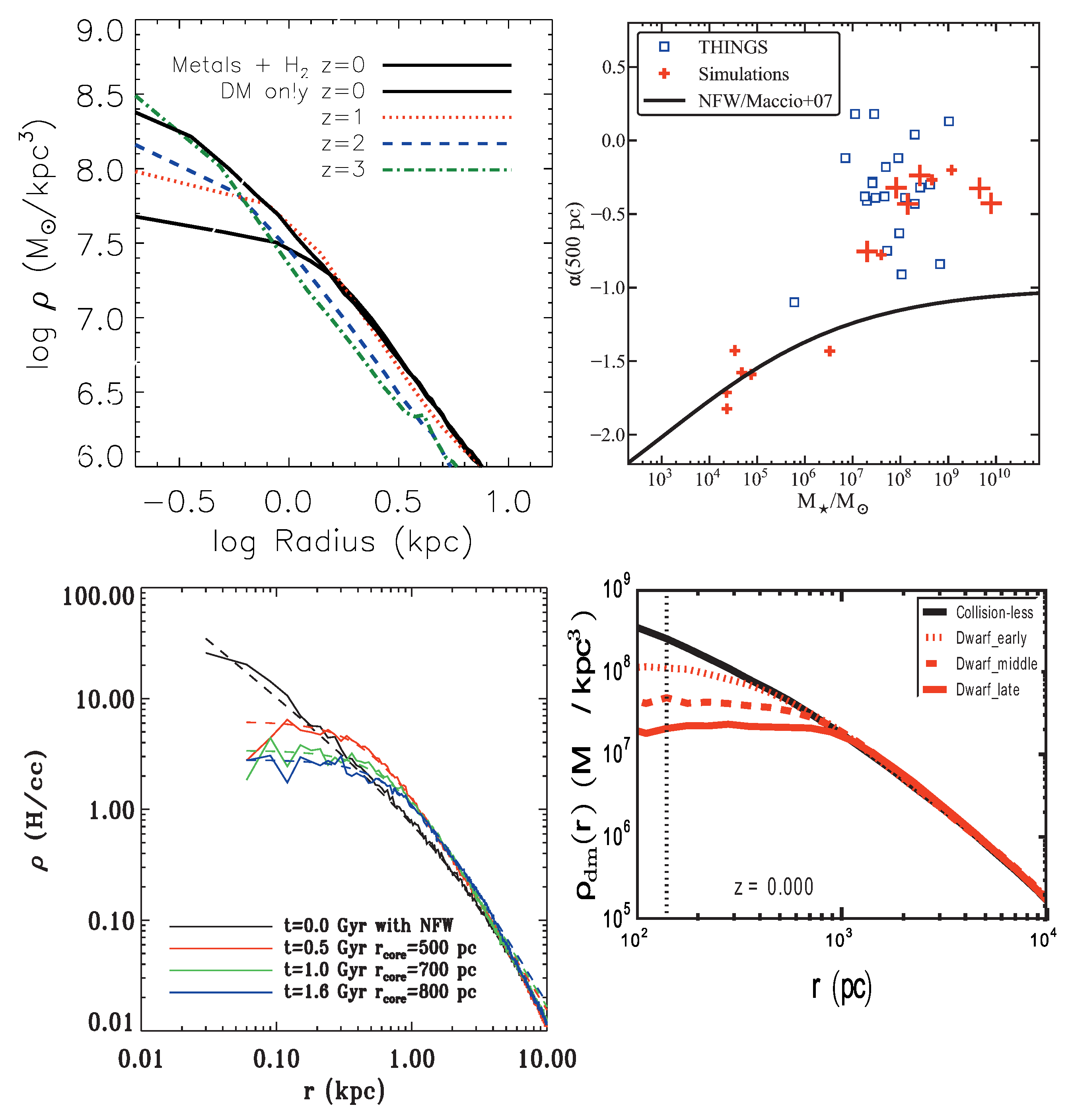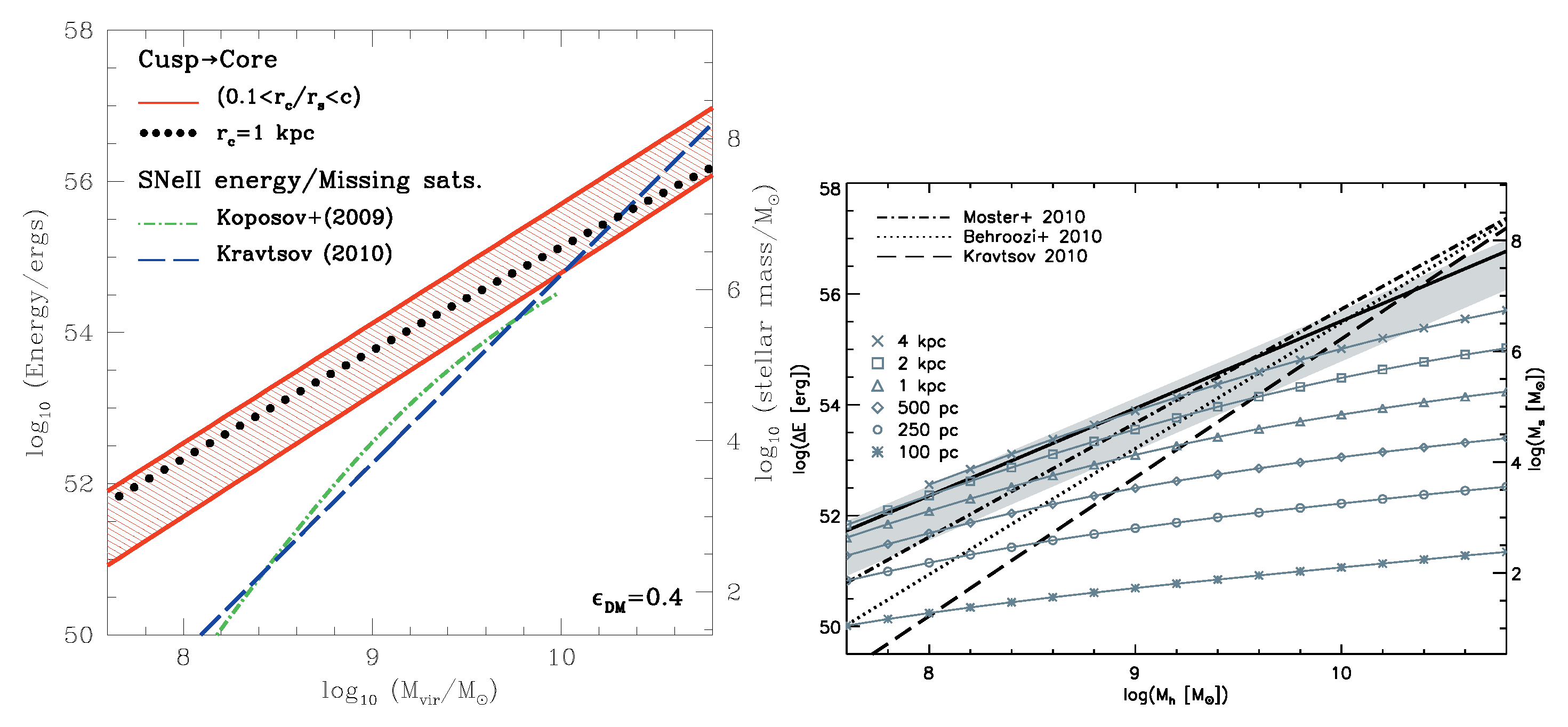 A different process was for the first time proposed by Navarro et al. [278], based on supernovae feedback (see the following), that was able to flatten the DM profile.