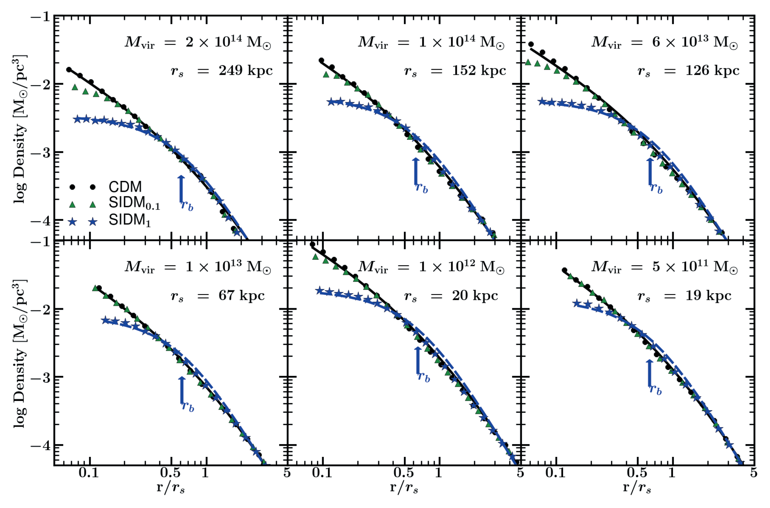 - Yoshida, N.; Springel, V.; White, S.D.M.; Tormen, G. Weakly Self-interacting Dark Matter and the Structure of Dark Halos. Astrophys. J. Lett. 2000, 544, L87–L90. [Google Scholar] [CrossRef]