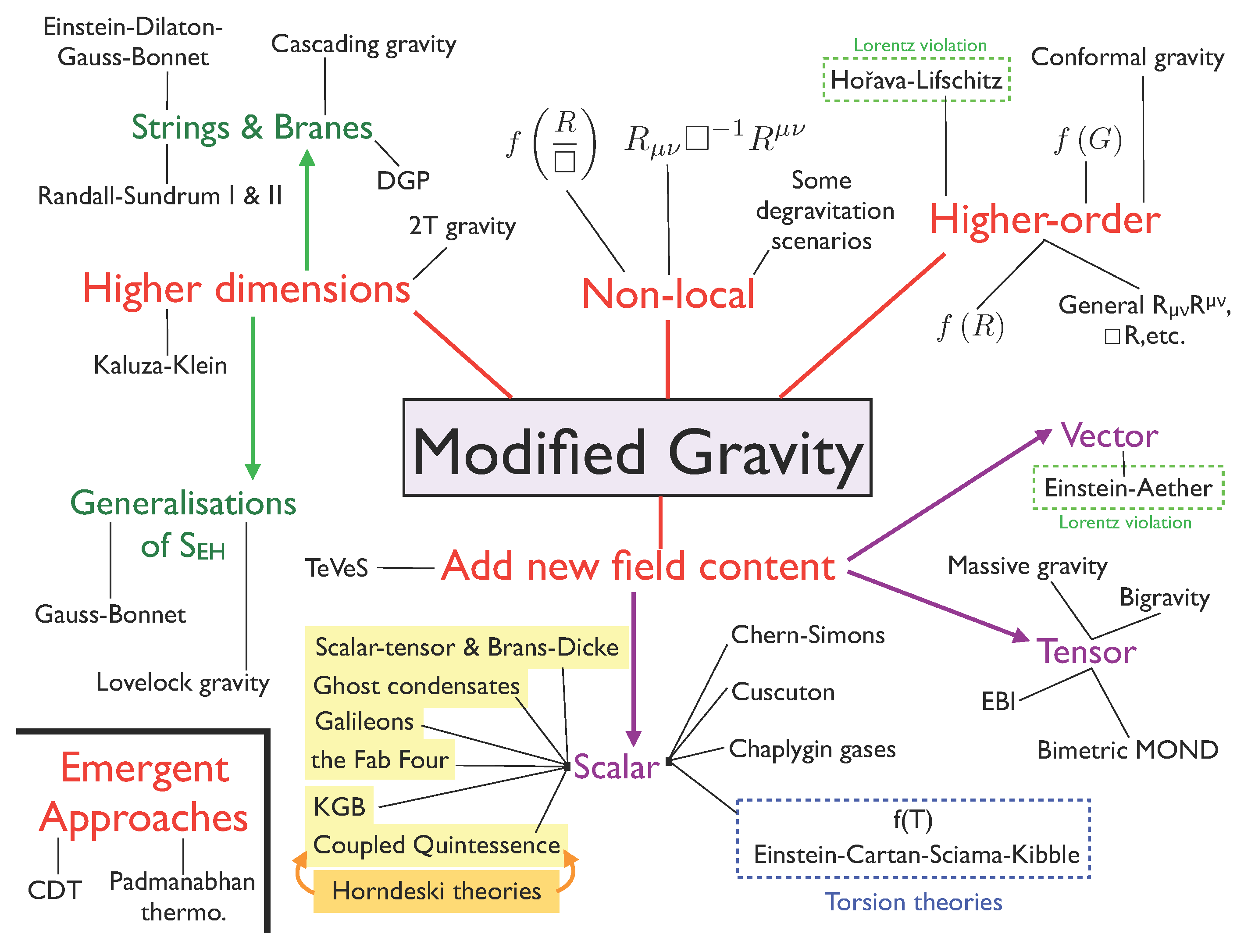 - 2., and theories are types of modified gravity theories, generalisation of Einstein’s General Relativity. First proposed in 1970 by Buchdahl [238], and turned into an active research field by Starobinsky [239], theories are defined by a different function of the Ricci scalar in their Lagrangian [246]. Inspired by the Teleparallel Equivalent of GR, the theories have been introduced to explain Universe acceleration without using dark energy (see Ref. [240]). Finally, the Modified Newtonian Dynamics, was introduced in 1983 by Milgrom [244,245] as a way to model rotation curves of galaxies.