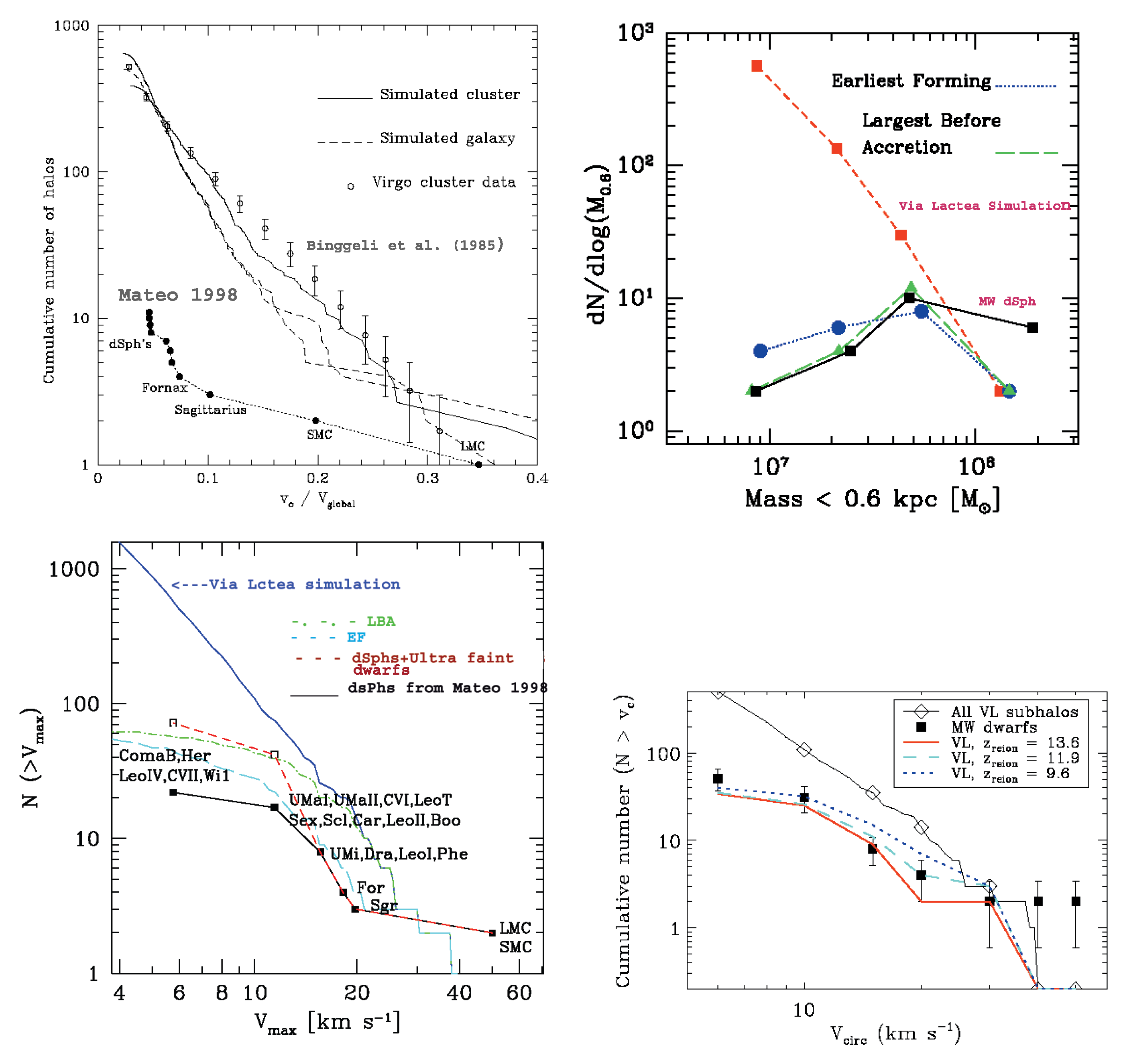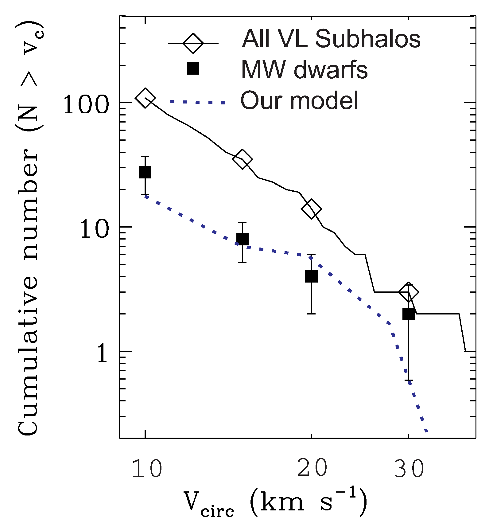 More recent simulations (e.g., [119]) claim that the problem of reproducing those structures is merely due to neglecting the Zolotov effects of baryons, the comparison being made with N-body only simulations, while when taking those effects into account, such structures are no-longer problems.