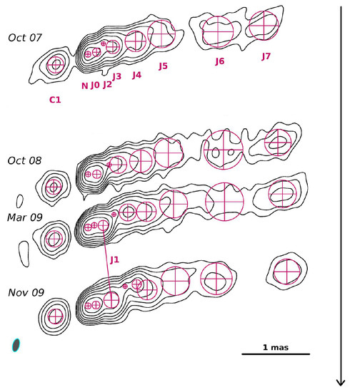 5. Marscher, A.P.; Jorstad, S.G.; D’Arcangelo, F.D.; Smith, P.S.; Williams, G.G.; Larionov, V.M.; Oh, H.; Olmstead, A.R.; Aller, M.F.; Aller, H.D.; et al. The inner jet of an active galactic nucleus as revealed by a radio-to-γ-ray outburst. Nature 2008, 452, 966–969. [Google Scholar] [CrossRef] [PubMed]