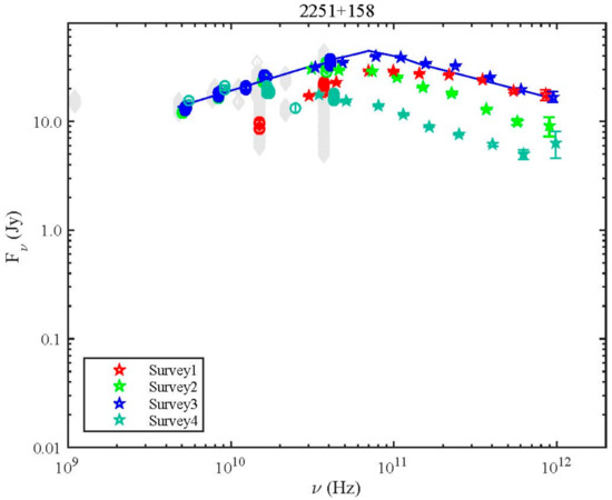 - Planck Collaboration; Aatrokoski, J.; Ade, P.A.R.; Aghanim, N.; Aller, H.D.; Aller, M.F.; Angelakis, E.; Arnaud, M.; Ashdown, M.; Aumont, J.; et al. Planck Collaboration XV. Planck early results. XV. Spectral energy distributions of extragalactic radio sources. arXiv, 2011; arXiv:1101.2047arXiv:1101.2047. [Google Scholar]