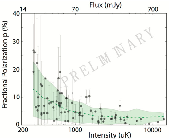 - Bonavera, L.; Gonzalez-Nuevo, J.; Argüeso, F.; Toffolatti, L. Statistics of the fractional polarization of compact radio sources in Planck maps. Mon. Not. Roy. Astron. Soc. 2017, 469, 2401–2411. [Google Scholar] [CrossRef]
