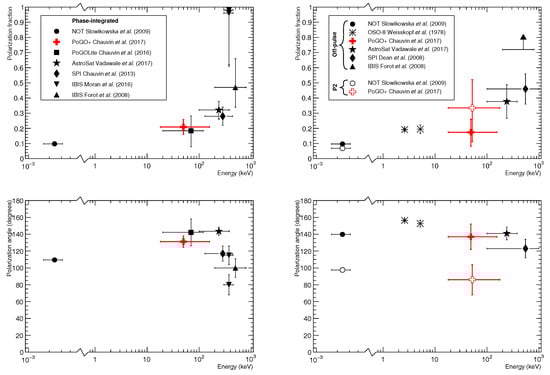 15], in an energy range complementary to that of PoGO+, 100–380 keV. Results from these high-energy studies were collected and are shown in