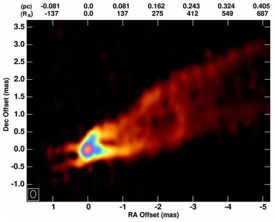 - Kovalev, Y.Y.; Lister, M.L.; Homan, D.C.; Kellermann, K.I. The Inner Jet of the Radio Galaxy M87. Astrophys. J. Lett. 2007, 668, 27–30. [Google Scholar] [CrossRef]