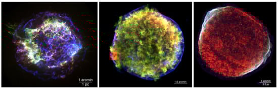 - Vink, J. Supernova remnants: The X-ray perspective. Astron. Astrophys. Rev. 2012, 20, 49. [Google Scholar] [CrossRef]