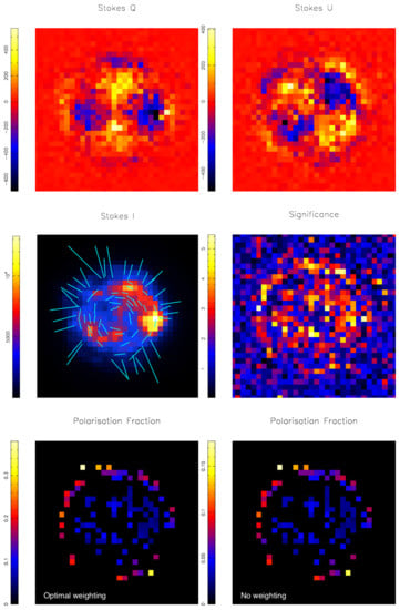 And similarly, . Equation (3) provides an estimate for the true polarisation factor, if there are no instrumental depolarisation effects. How to correct for the instrumental effects will be discussed below.