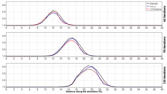 In order to verify that the parallelepipeds accurately monitor their volume elements, a simulation was produced in which a relativistic, planar shock impinges on ambient medium of equal density. As the density of the jet and ambient medium are initially equal, it may be assumed that the mass density at any point in the simulation is the inverse of the parallelepiped volume