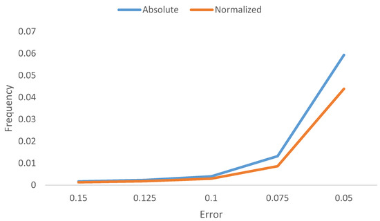 Figure 6 and Figure 7 show the absolute and normalized error, respectively, as a function of the color.