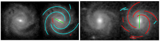 - Davis, D.; Hayes, W. Automated quantitative description of spiral galaxy arm-segment structure. In Proceedings of the 2012 IEEE Conference on Computer Vision and Pattern Recognition, Providence, RI, USA, 16–21 June 2012; pp. 1138–1145. [Google Scholar] [CrossRef]