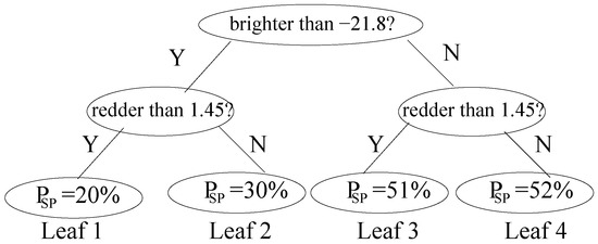 - This bins each galaxy into one of four leaf nodes, as in Figure 2.