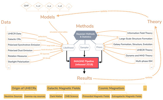 - Boulanger, F.; Enßlin, T.; Fletcher, A.; Girichides, P.; Hackstein, S.; Haverkorn, M.; Hörandel, J.R.; Jaffe, T.; Jasche, J.; Kachelrieß, M.; et al. IMAGINE: A comprehensive view of the interstellar medium, Galactic magnetic fields and cosmic rays. J. Cosmol. Astropart. Phys. 2018, 8, 049. [Google Scholar] [CrossRef]