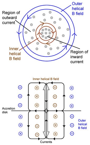 - Gabuzda, D.C.; Nagle, M.; Roche, N. The Jets of AGN as Giant Coaxial Cables. Astron. Astrophys. 2018, 612, A67–A79. [Google Scholar]