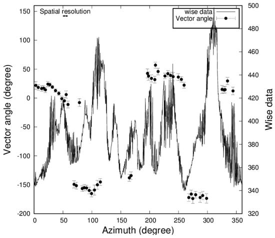 4.2. Azimuthal Change of the Vector Angle