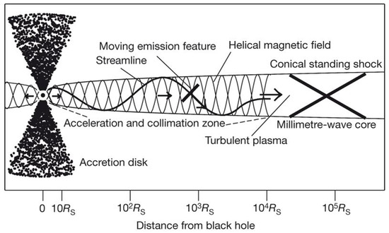 - Romero, G.E.; Boettcher, M.; Markoff, S.; Tavecchio, F. Relativistic Jets in Active Galactic Nuclei and Microquasars. Space Sci. Rev. 2017, 207, 5–61. [Google Scholar] [CrossRef]