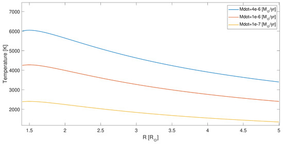 Analyzing the data, we find that the effective temperature of A13db1417 declined from ≃ to ≃ during the last stage of the eruption. The trend and the values are similar to the effective temperature from of V838 Mon [67]. According to our model, the emission of A13db1417 comes from a viscous disk. Modeling the emission in our specific case would require an extensive numerical study, that might be too excessive given the rough estimate of the parameters. But for a crude estimate, we calculate the temperature for a classical accretion disk model