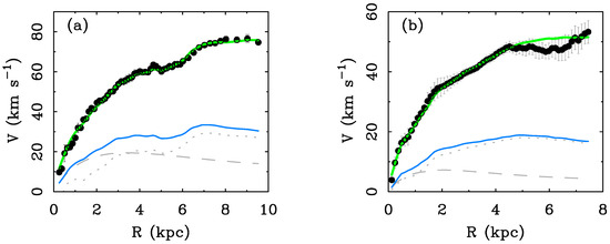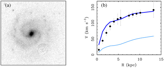 - de Blok, W.J.G.; Bosma, A. High-resolution rotation curves of low surface brightness galaxies. Astron. Astrophys. 2002, 385, 816–846. [Google Scholar] [CrossRef]