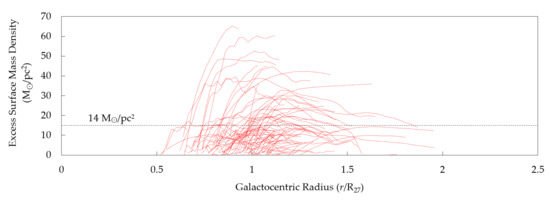 | 7 | For 15 out 82 galaxies, average excess density is above 20 M⊙/pc2, requiring additional data checks. |