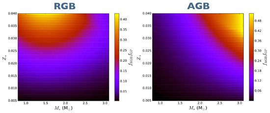 To determine the probability of a star having and engulfing a planet, the occurrence rates of massive planets as a function of host star mass and metallicity must be determined. The massive planet occurrence rate of Gaidos and Mann [14] is adopted and is given by the term fGP. The number of engulfments in the population resulting from the orbital evolution models, for each of the five different stellar metallicity models, were fit with a logistic regression to determine the probabilities of stars engulfing a planet on either the RGB or AGB as a function of the host star mass. The probabilities from the five regression models were then interpolated with respect to metallicity to compute a finer grid of engulfment probabilities as a function of both mass and metallicity. The resulting grids were then combined with the occurrence rates of massive planets of [14] to determine the probability of having and engulfing planets, for all metallicities between 0.005 and 0.04. The probabilities of having and engulfing planets on the RGB and AGB, as a function of mass and metallicity, are plotted in Figure 2. The Kroupa [15] IMF is employed in this chapter to determine the number of stars in each mass bin, which are calculated in simsplash.