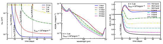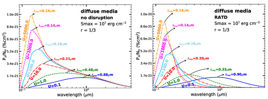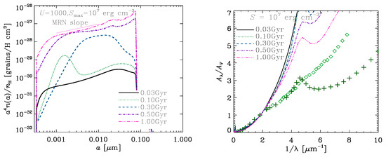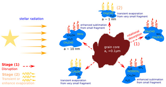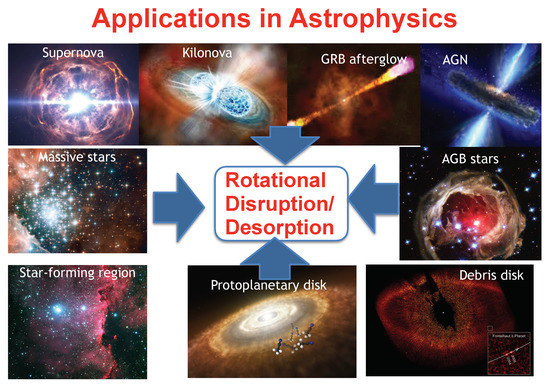 103. Hirashita, H.; Hoang, T. Effects of rotational disruption on the evolution of grain size distribution in galaxies. Mon. Not. R. Astron. Soc. 2020, 494, 1058–1070. [Google Scholar] [CrossRef]