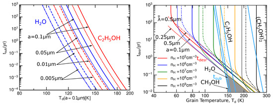 81. Leger, A.; Jura, M.; Omont, A. Desorption from interstellar grains. Astron. Astrophys. 1985, 144, 147–160. [Google Scholar]