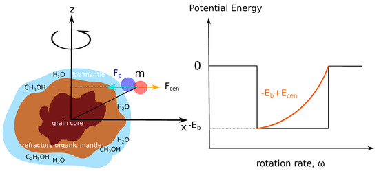 172. Hoang, T. Chemistry on rotating grain surfaces: Ro-thermal hopping and segregation of molecules in ice mantles. arXiv 2019, arXiv:1910.12205. [Google Scholar]