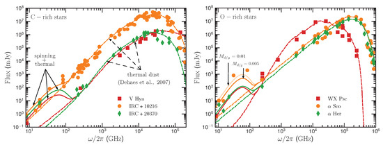 102. Hensley, B.S.; Draine, B.T. Modeling the Anomalous Microwave Emission with Spinning Nanoparticles: No PAHs Required. Astrophys. J. 2017, 836, 179. [Google Scholar] [CrossRef]