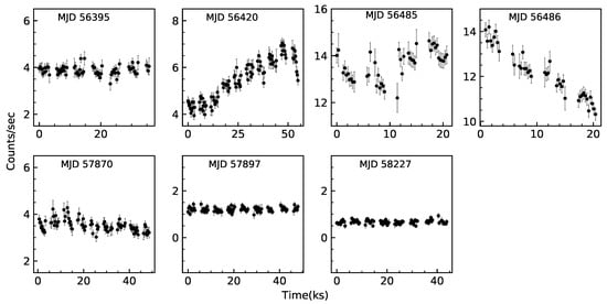 - Pandey, A.; Gupta, A.C.; Wiita, P.J. X-ray Flux and Spectral Variability of Six TeV Blazars with NuSTAR. Astrophys. J. 2018, 859, 49. [Google Scholar] [CrossRef]