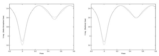 - Kallrath, J.; Milone, E.F. Eclipsing Binary Stars: Modeling and Analysis, 2nd ed.; Springer Publ.: New York, NY, USA, 2009; pp. 109–114, 238–241. [Google Scholar]