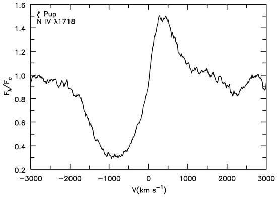 The N iv transition in Puppis ( O4I(n)fp ) showing a classic P Cygni profile.