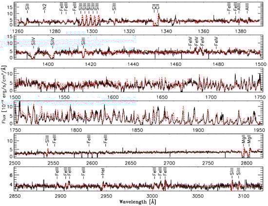 This review primarily discusses the UV. In practice, today’s analyses are best done using a wide wavelength coverage—from X-rays to radio. Different spectral regions contain different diagnostics and, importantly, provide consistency checks for results from other regions. We will also ignore the interstellar medium (ISM)—the UV of O stars provides a convenient background to study the ISM in, for example, our galaxy, and the Magellanic Clouds. There are several previous reviews that cover the UV (e.g., [,]). Obviously there will be some overlap with the current review. There are also extensive reviews on massive stars [,,].