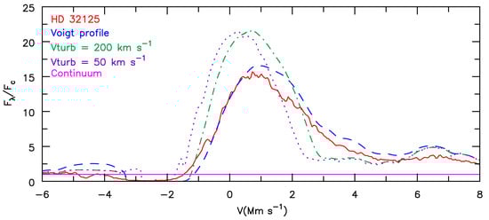- Bernat, A.P.; Lambert, D.L. Electron scattering in the expanding atmosphere of P Cygni. Publ. Astron. Soc. Pac. 1978, 90, 520–525. [Google Scholar] [CrossRef]
