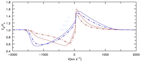 - Prinja, R.K.; Massa, D.L. Ultraviolet diagnostic of porosity-free mass-loss estimates in B stars. Astron. Astrophys. 2013, 559, A15. [Google Scholar] [CrossRef][Green Version]