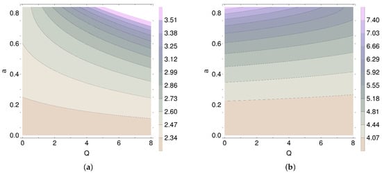 - If is the average slope of the observed PSD after the break frequency, , given bywhere represents the difference of values at the end points defined by MBSO and ISCO in our model: the end point of the PSD for (where ) is at the MBSO radius (), so thatwherewhere can be substituted using Equation (24), which yieldsHence, for a given combination of {a, Q}, we obtain a relation, given by Equation (25f), where {, } are unknowns.