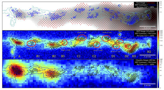 - Perlman, E.S.; Padgett, C.A.; Georganopoulos, M.; Worrall, D.M.; Kastner, J.H.; Franz, G.; Birkinshaw, M.; Dulwich, F.; O’Dea, C.P.; Baum, S.A.; et al. A Multi-Wavelength Spectral and Polarimetric Study of the Jet of 3C 264. Astrophys. J. 2010, 708, 171–187. [Google Scholar] [CrossRef]