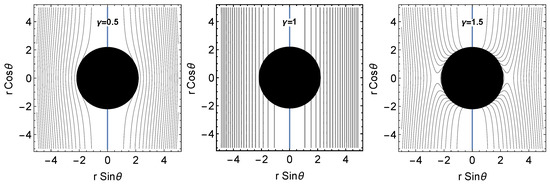 - Benavides-Gallego, C.A.; Abdujabbarov, A.; Malafarina, D.; Ahmedov, B.; Bambi, C. Charged particle motion and electromagnetic field in γ spacetime. Phys. Rev. D 2019, 99, 044012. [Google Scholar] [CrossRef]