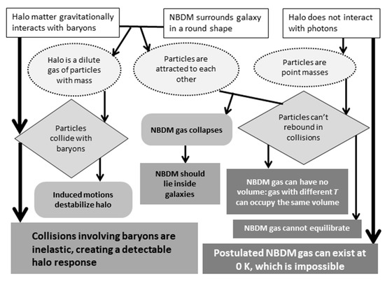 | Gravitationally interacts with ordinary matter | NBDM has mass; collisions must occur |
