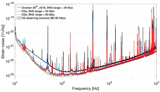 - Wąs, M.; Patricelli, B. Range Variations and Subtraction Efficiency. December 2019. Available online: https://logbook.virgo-gw.eu/virgo/?r=47852 (accessed on 4 December 2020).