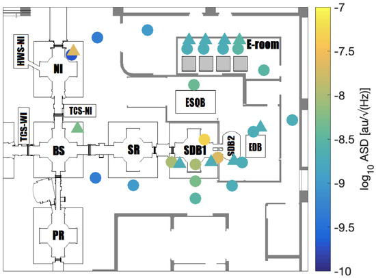 - De Rosa, R.; Fiori, I. AdV ENV Probe Maps (Fast and Slow Sensors). May 2019. Available online: https://tds.virgo-gw.eu/ql/?c=13976 (accessed on 4 December 2020).