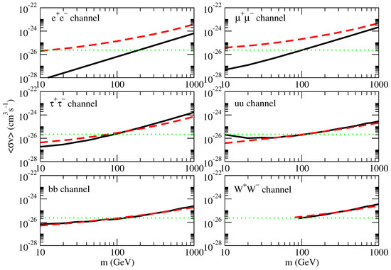 - Chan, M.H.; Cui, L.; Liu, J.; Leung, C.S. Ruling out ∼100–300 GeV thermal relic annihilating dark matter by radio observation of the Andromeda galaxy. Astrophys. J. 2019, 872, 177. [Google Scholar] [CrossRef]