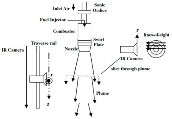 - Blunck, D.L.; Gore, J.P. Study of narrowband radiation intensity measurements from subsonic exhaust plumes. J. Propuls. Power 2011, 27, 227–235. [Google Scholar] [CrossRef]
