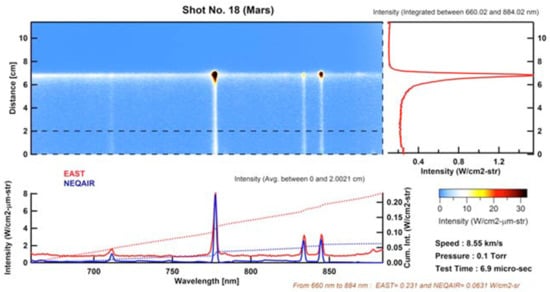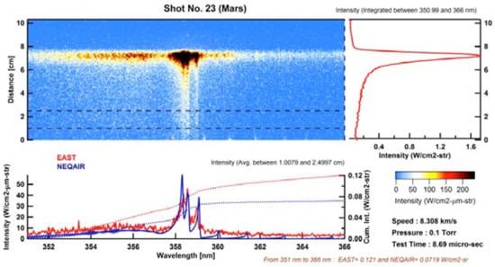 - Takayanagi, H.; Fujita, K. Infrared radiation measurements behind strong shock wave in Mars simulant gas for aerocapture missions, AIAA Paper 2013-2504. In Proceedings of the 44th AIAA Thermophysics Conference, San Diego, GA, USA, 24–27 June 2013. [Google Scholar]