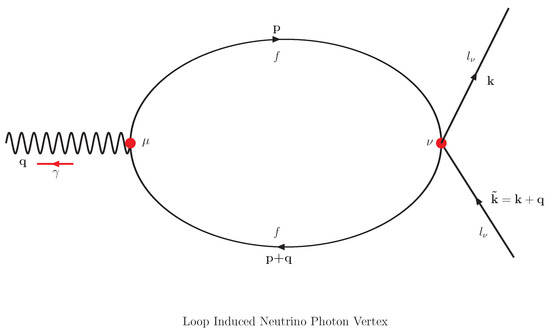 where k is the photon momentum. Here, is the the neutrino spinor and stands for the electromagnetic vector potential. In general, would depend on k and the characteristics of the medium. With our effective Lagrangian, the vertex is given by