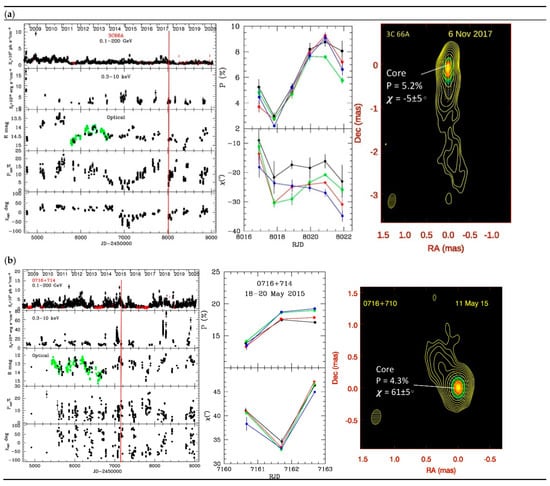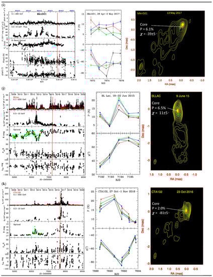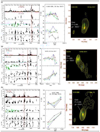 - Peirson, L.A.; Romani, R.W. The Polarization Behavior of Relativistic Synchrotron Jets. Astrophys. J. 2018, 864, 140. [Google Scholar] [CrossRef]