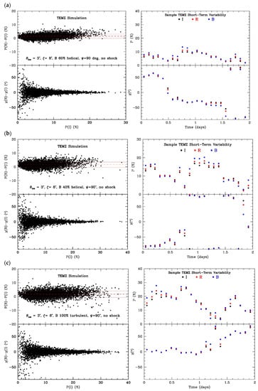 - Plasma with a randomly tangled magnetic field should have a low mean degree of LP, , where is the number of magnetic cells, each with a random magnetic field direction [18] and , which depends weakly on the slope of the synchrotron spectrum, is typically in the range of 68–75%. The observed value of P is predicted to fluctuate over time with a standard deviation [19]. The value of χ should vary across the full range, often mimicking systematic rotations that can exceed 180°, but occurring in random directions (i.e., either clockwise or counter-clockwise).