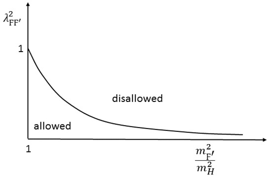 The DS, whose two subsectors are depicted in Figure 1, can have any kind of particles, can have any perturbative couplings and can lie at any scale (from the weak scale to way up to the Planck scale) as long as the gravitational scale in (32) comes out right. Non-necessity of any sizable DS-SM couplings, as derived in (34), is what distinguishes the DS of the symmergence from the BSM sectors of supersymmetry, extra dimensions, composite models and others [7,8] where a sizable SM-BSM coupling is a symmetry requirement. The schematic plot in Figure 2 is the variation of the DS-SM coupling with the BSM masses . The region allowed by natural couplings (the bound in (43)) is the one below the curve.