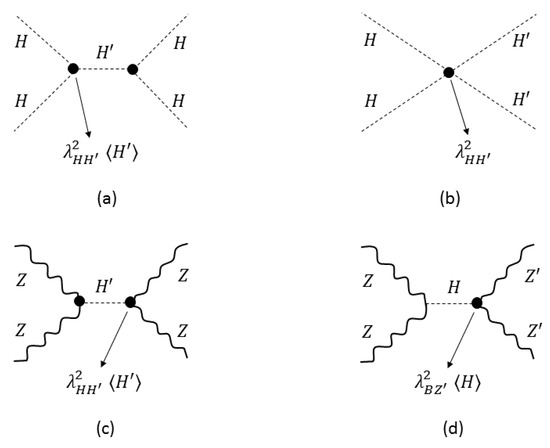 acts as a decisive probe of a naturally coupled heavy scalar in the DS. This method works also for the scatterings in Figure 4c,d. The scatterings as such (specifically the scatterings here) can be directly tested at present [86,87] and future [88,89] colliders, and decisions can be made on the seesawic nature of the DS [39].