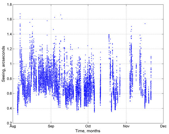 Figure 2 shows the whole timeseries of the astronomical seeing results obtained at the Maidanak Observatory.