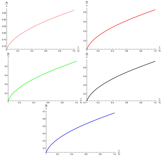 It is clear from Figure 1 that, as the critical temperature increases, the entropy released into the primeval plasma also increases correspondingly. All these productions were higher than the entropy production in the SM, which was about . The main contribution for 2HDM scenarios came from the massive scalar bosons, which were absent in the SM.