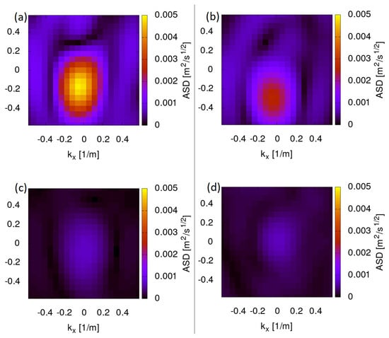 Figure 1 shows the obtained spatio–temporal amplitude spectral density for these exemplary data, in a form of colormap, for 3, 4, and 5 Hz. Additionally, a rank of ASD values is shown for frequency 3 Hz. The right panel of